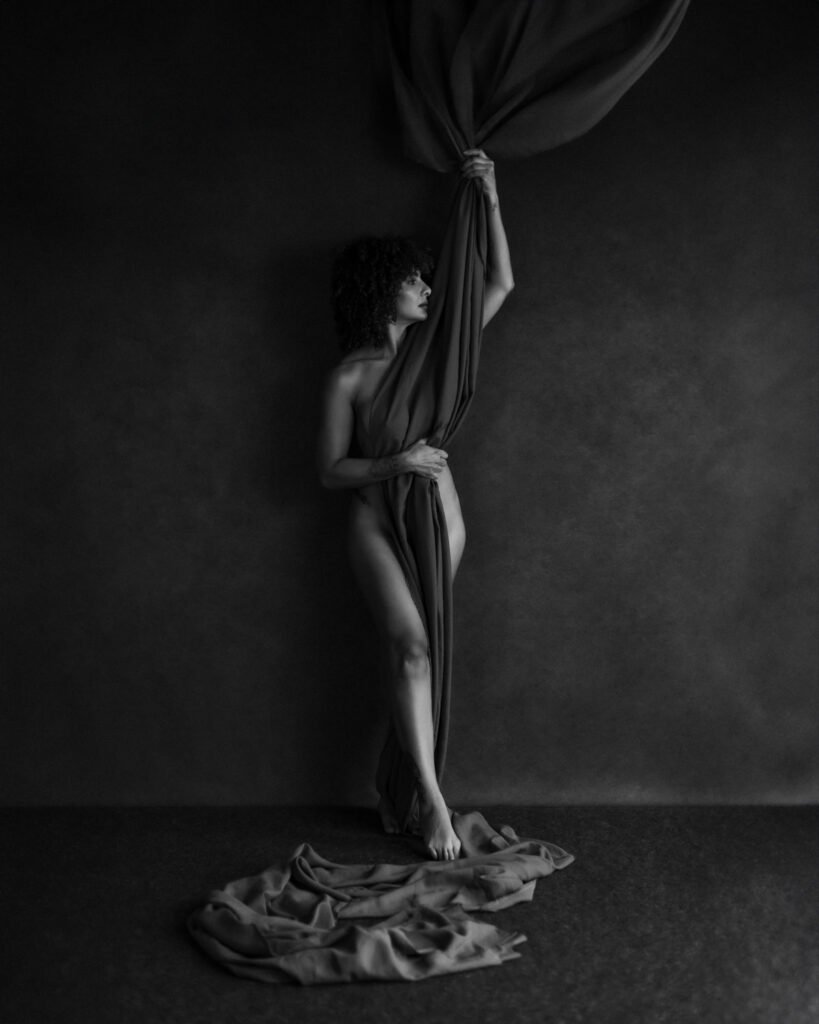 Each pose, each fold of fabric, and each carefully positioned light was designed to enhance the female form as a living work of art — just like the statues that inspire me.